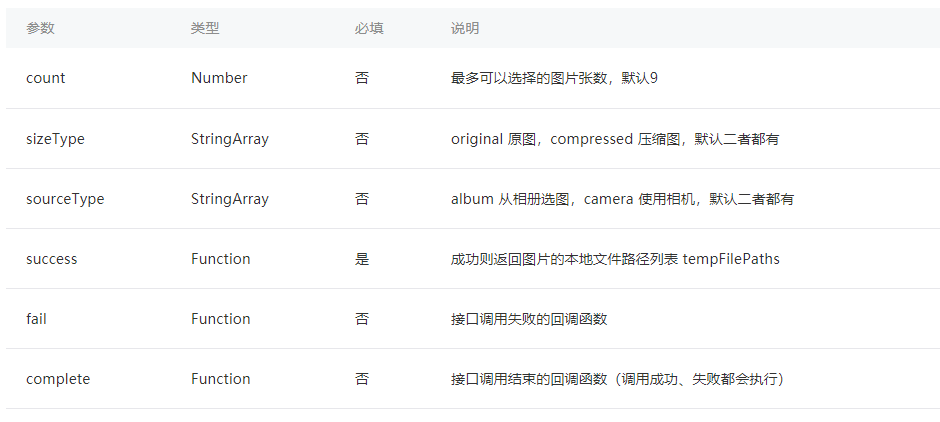 小程序上傳圖片要先了解他其中的各個(gè)屬性值,在https://developers.weixin.qq.com/miniprogram/dev/api/media-picture.html內(nèi)有詳細(xì)的介紹